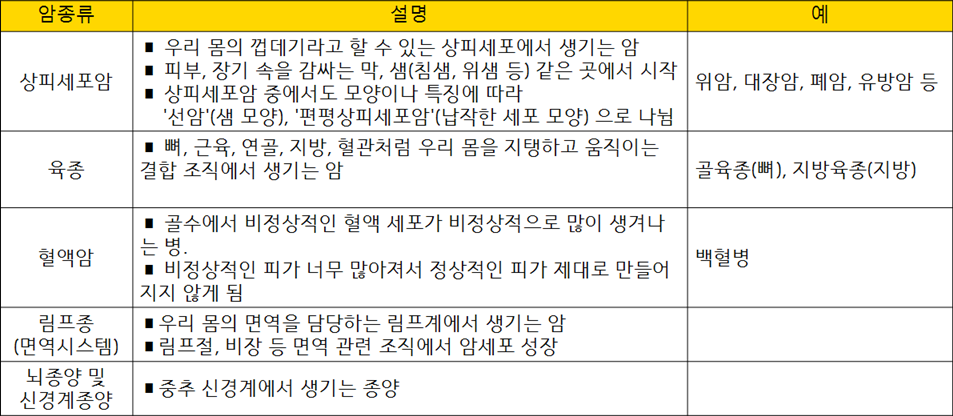 1. 암의 종류