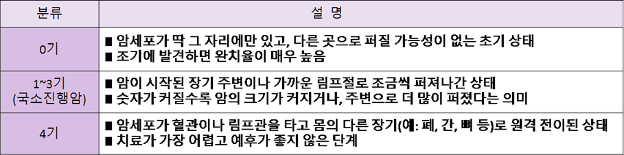 (2) 암의 진행 정도에 따른 분류 ('병기')