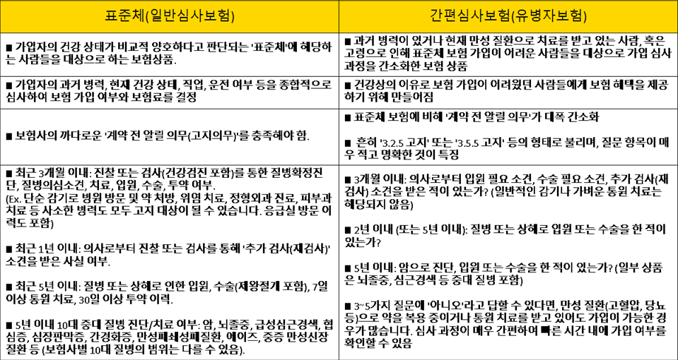 1. 표준체 보험 (일반 심사 보험) VS 간편 심사 보험 (유병자 보험)의 차이