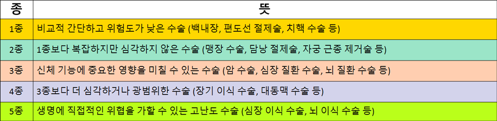 오늘은 담보 중 1~5종 수술에 대해 알아봅니다.